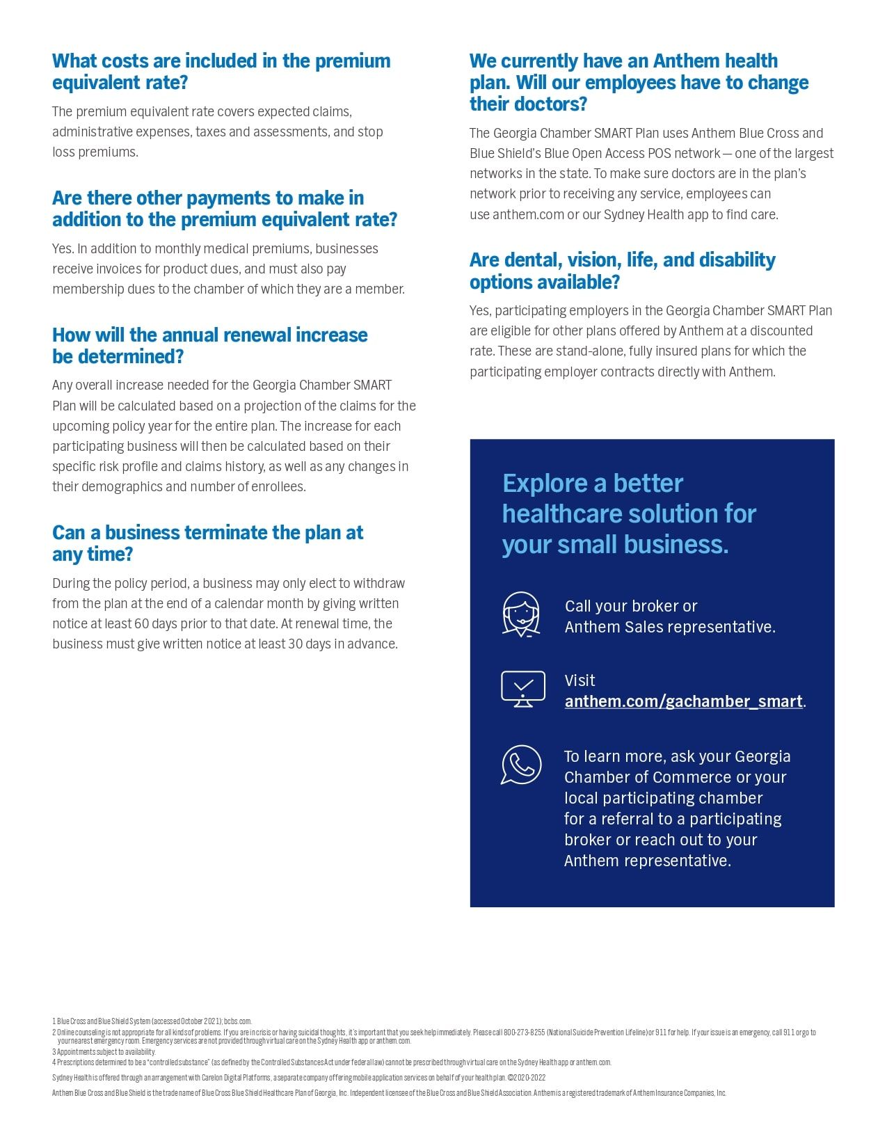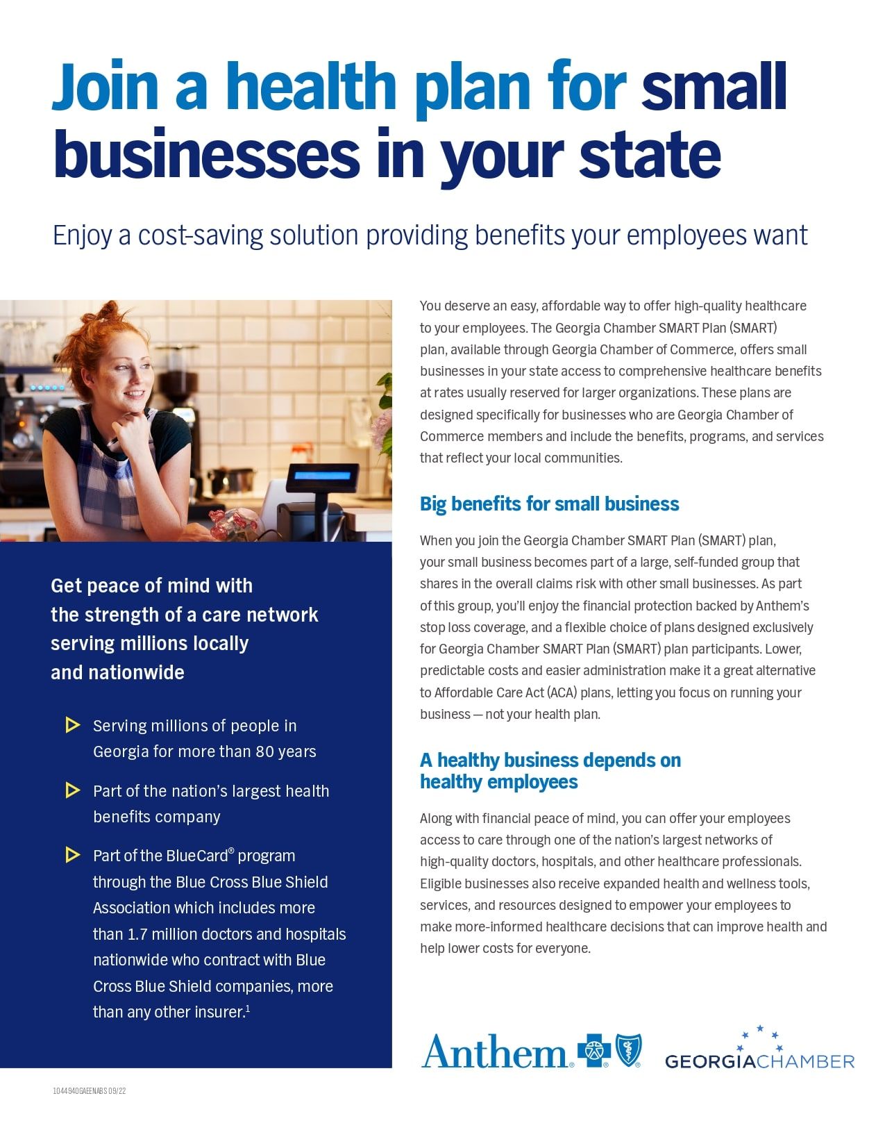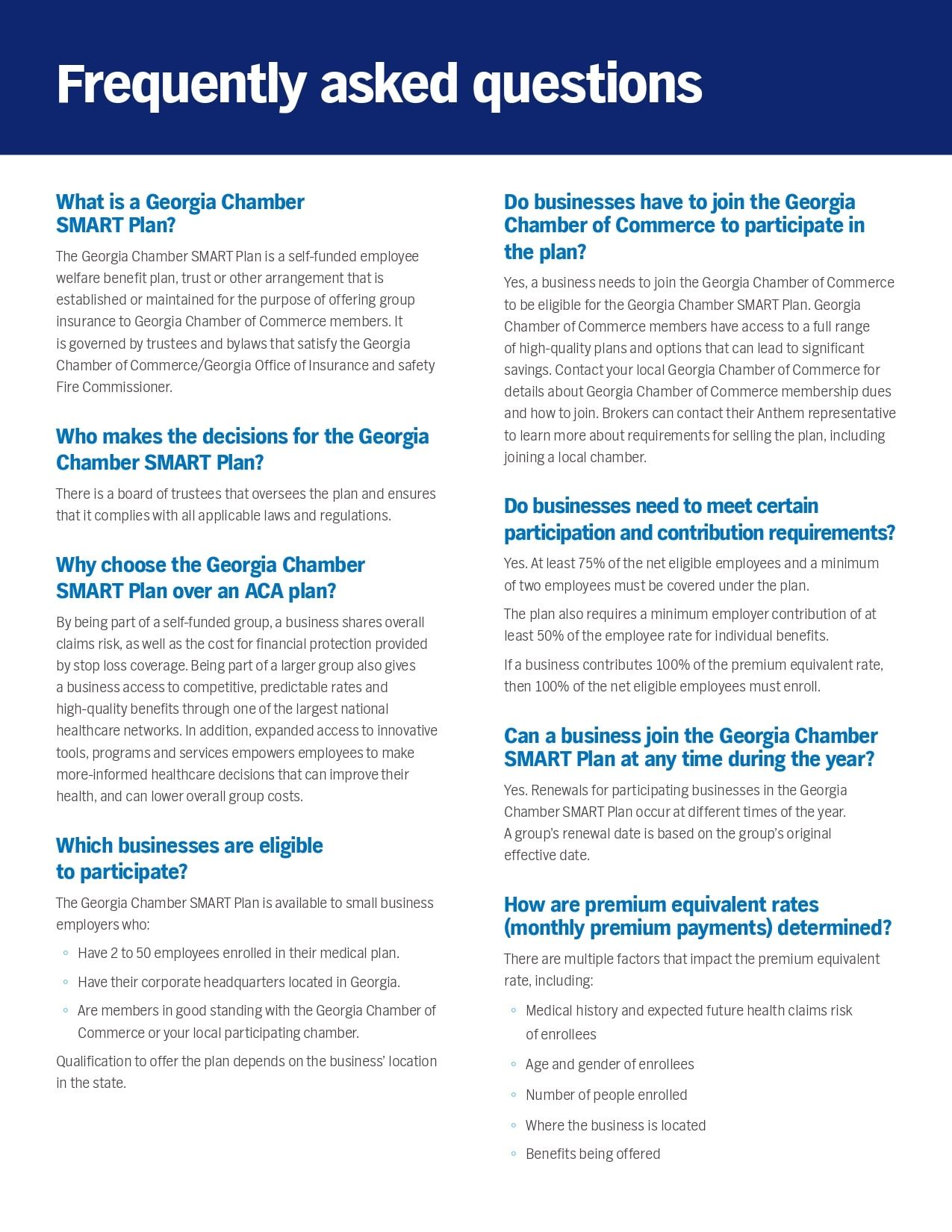 Among them, we offer an exclusive Health Plan, in partnership with the Georgia Chamber, for small businesses with 2 to 50 employees.