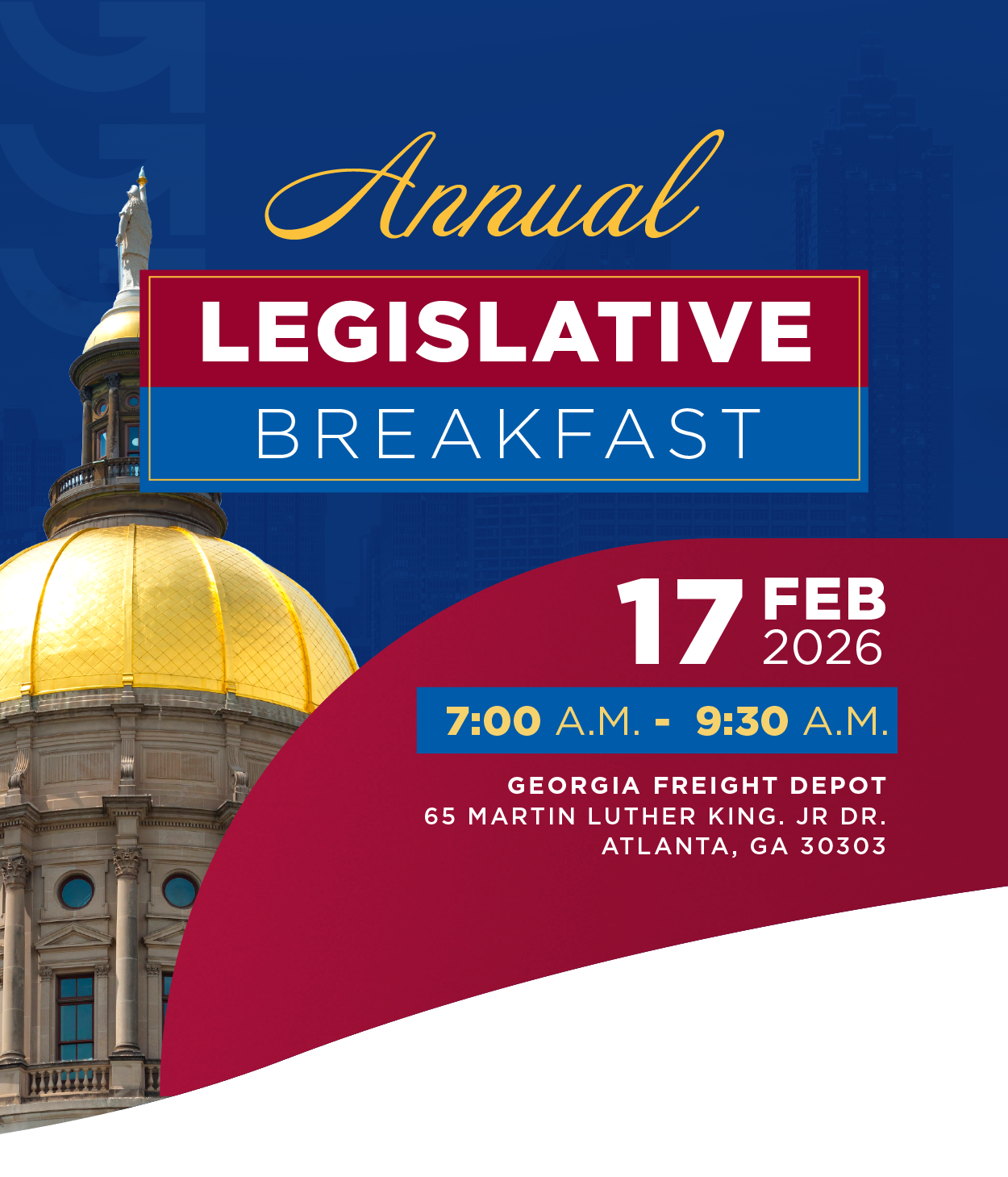 Seize this opportunity to connect, learn, and be part of the driving force influencing Georgia’s legislative and business landscape. Secure your seat at the Legislative Breakfast and be a catalyst for positive change. Your presence matters!